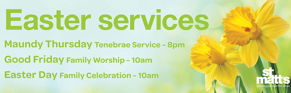 Most of our services over Easter will be both in church and online. Please do join us if you can.