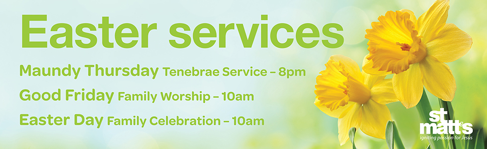 Most of our services over Easter will be both in church and online. Please do join us if you can.